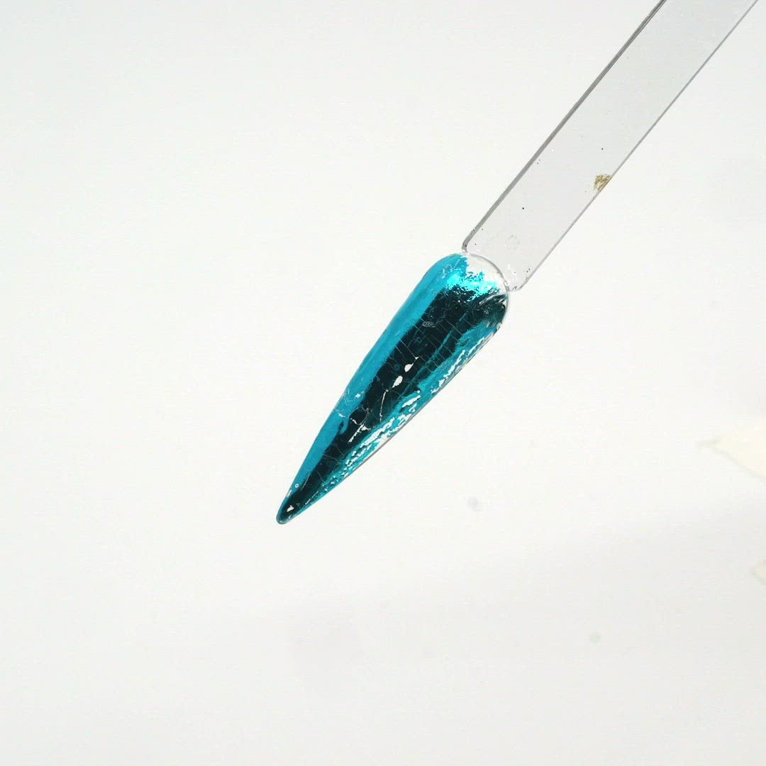 After curing, while the gel is still tacky (sticky), press the foil, shiny side up onto the nail to transfer the pattern, and then peel off the foil.